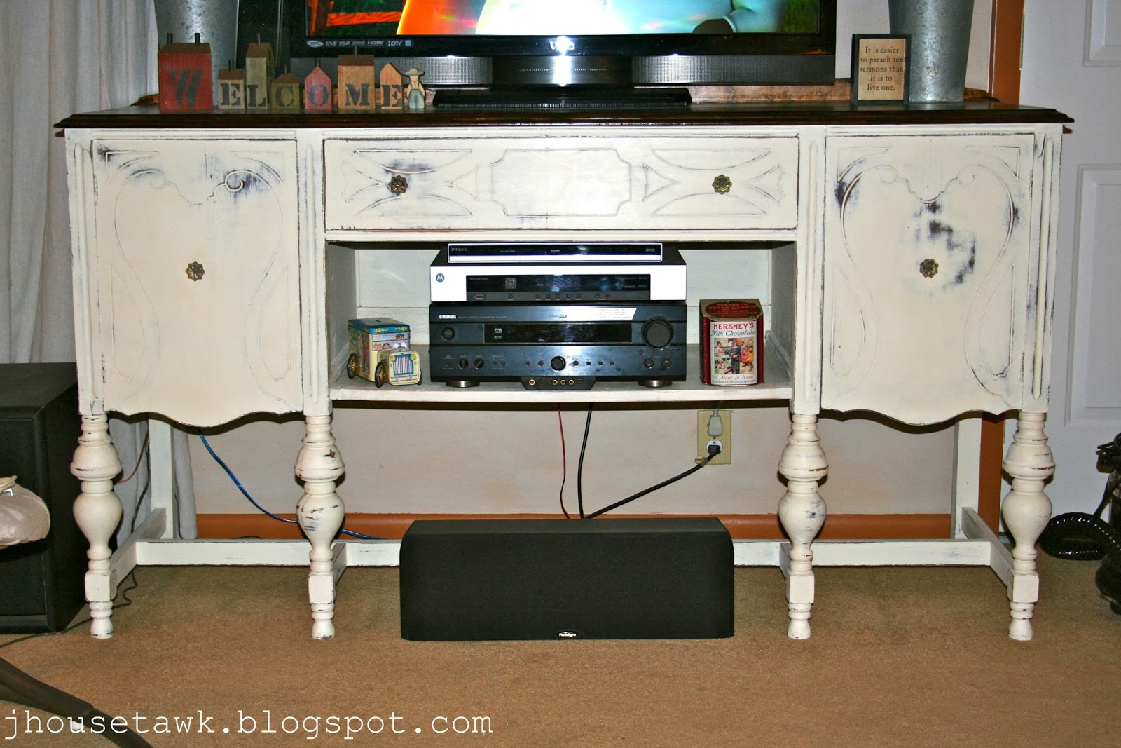 I purchased an antique buffet for $50.00 almost a year ago and have been wanting to turn it into our family room's new t.v. console!